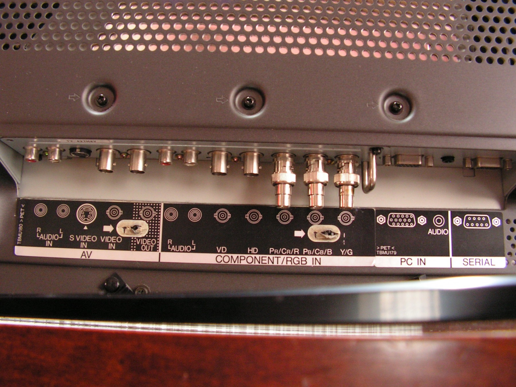Salut, am si eu un Panasonic TH 42PW Plasma care nu are mufa pentru antena tv. Va rog sa ma indrumati care este solutia pentru a putea vedea tv la el.Am un videorecorder cu tuner incorporat dar are mufa euroscart, insa plasma nu are.Va atasez o poza cu panelul plasmei.